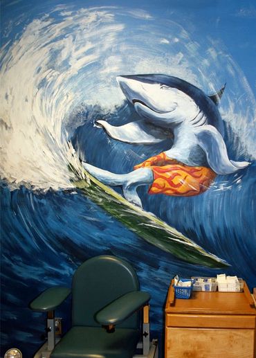 Two years later, Peter Hanson’s grandparents contacted me to create a mural for Boston Medical Center’s Pediatric Treatment Room to be dedicated to their son, wife and granddaughter on flight 175.